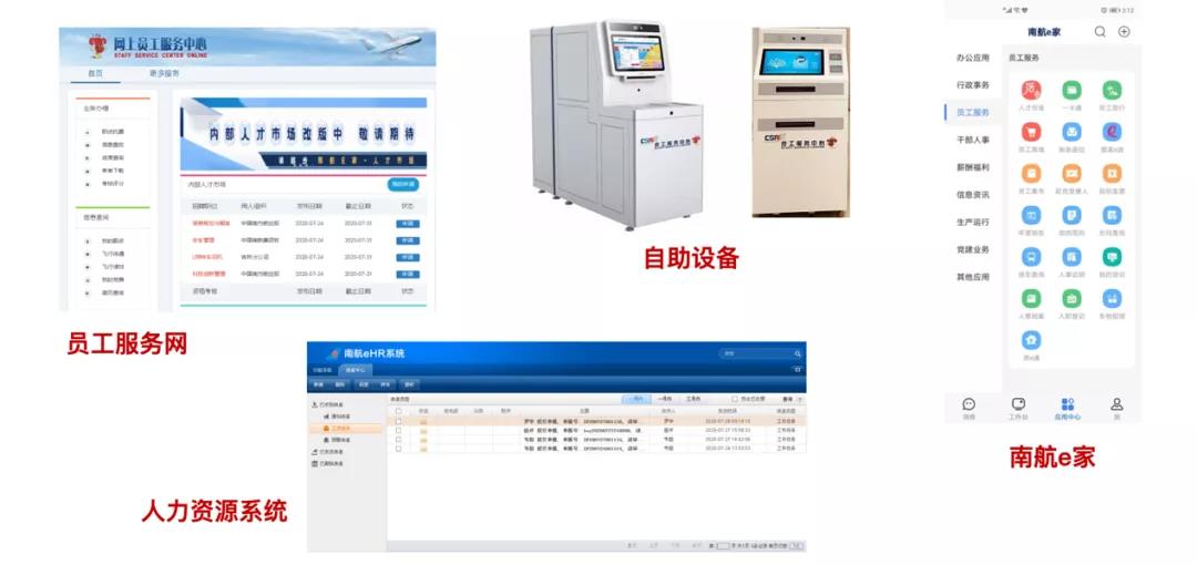 二是进行共享服务平台的搭建。南航首先从整体上进行了数字化转型规划,承接企业价值链对平台的能力要求及人力共享模式的业务诉求。其次,从业务规划报告中的共享服务模式出发,以“规范、集成、智能”为共享服务理念,提出从体验、自助服务、访问渠道和人力资源系统四个方面的建设和优化升级建议。搭建“1+e”共享服务体系,即“1”是指一个员工服务中心,“e”是指在南航e家移动门户上的共享服务平台。并且在最终实现上线的人力共享服务平台功能,包括了门户、客服热线、个案系统、知识库系统、文档管理等系统功能。
