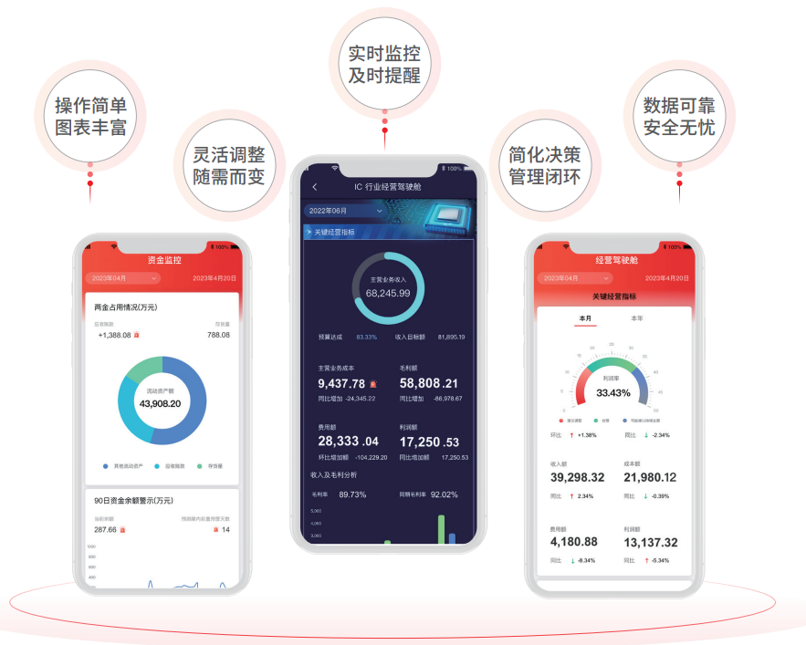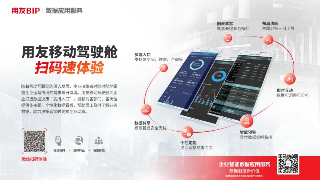 用友数据应用服务移动驾驶舱,帮助企业聚焦关键业务指标,助力企业快速构建个性化数据整合分析能力,数据随身携带,洞察企业经营!掌握移动驾驶舱,开启智能新时代!