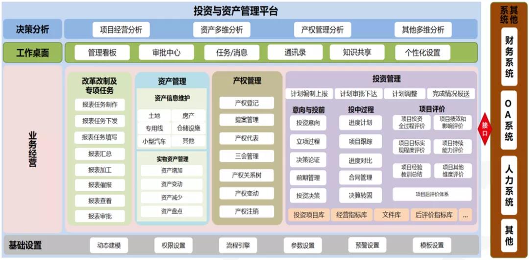 在满足国资委关注的固定资产投资、长期股权投资项目决策监管的基础上,将资产盘活、产权交易、工程承包等项目参照投资项目进行全过程管理,将“内部重组”、“混改”、“改制上市”等改革专项任务参照投资项目强化决策过程管理或设计个性化统计报表,为企业优化资源配置提供基础性数据支撑。