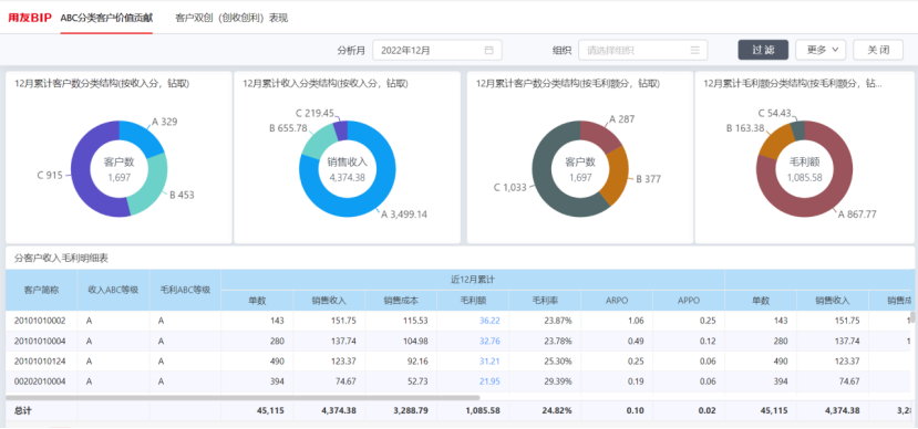 通过客户ABC模型实现客户的精准分类,帮助企业更好地管理客户群:A类客户通常会产生最高的销售额和利润,因此要将更多的资源集中在最重要的客户上,同时针对不同级别客户提供相应的服务和增长策略,实现客户的持续经营和转化。另外,客户分类模型让我们重点关注A类客户,为其提供更加符合客户需求的产品或服务有助于提高客户的满意度,留住关键客户并建立长期客户关系,从而提升销售业绩。