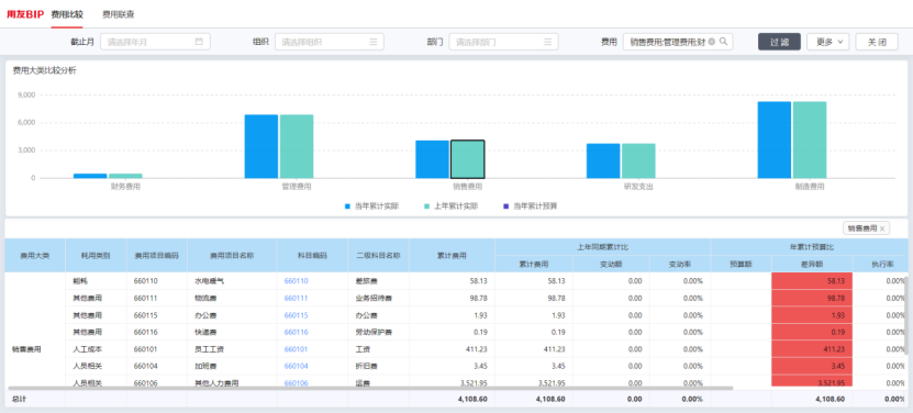 通过数智大屏,企业可以查看各类费用支出情况,尤其是销售费用,可以了解各项明细费用的组成情况,如:销售人员工资、广告费用、促销费用、差旅费用、客户接待费用等,了解销售费用结构构成和趋势,帮助企业识别增长异常点,找出成本节省的关键环节,达到降低销售成本的目的。